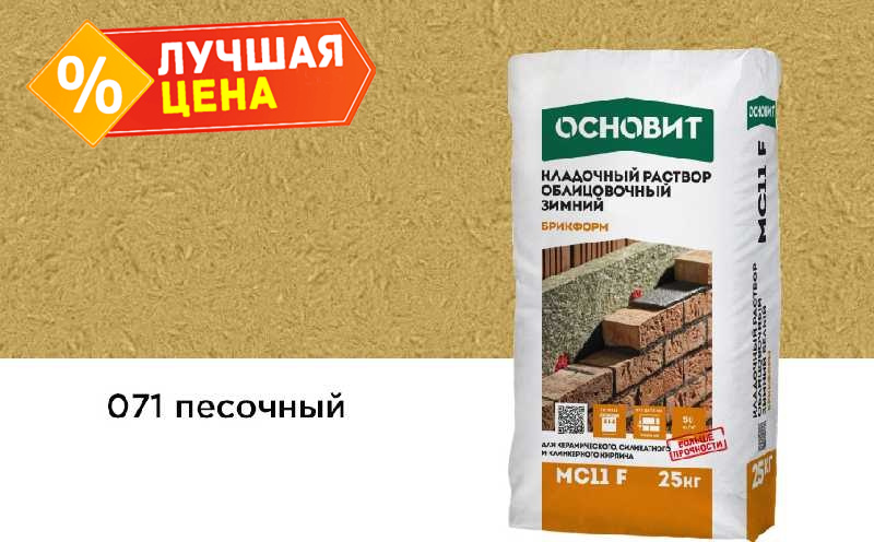 Кладочный раствор ОСНОВИТ БРИКФОРМ МС11 F зимний предназначен для кладки стен из облицовочного кирпича с водопоглощением до 12% с возможностью расшивки швов в момент укладки при температуре окружающей среды и основания от -10 до + 10°С.